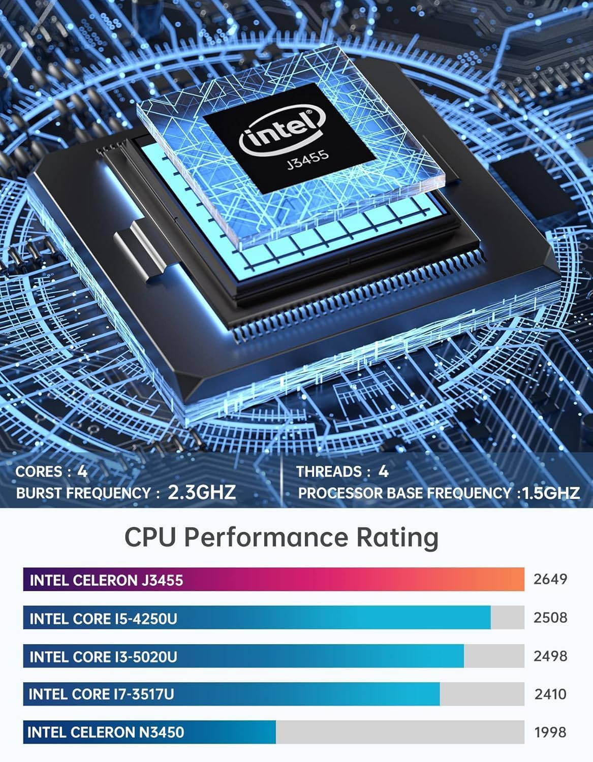 The Windows 10 tablet powered by the Intel Celeron J3455 Quad-Core processor offers a smooth and efficient computing experience. The J3455 features four cores with a base clock speed of 1.5 GHz, which can boost up to 2.3 GHz, delivering reliable performance for everyday productivity, web browsing, media consumption, and light multitasking.